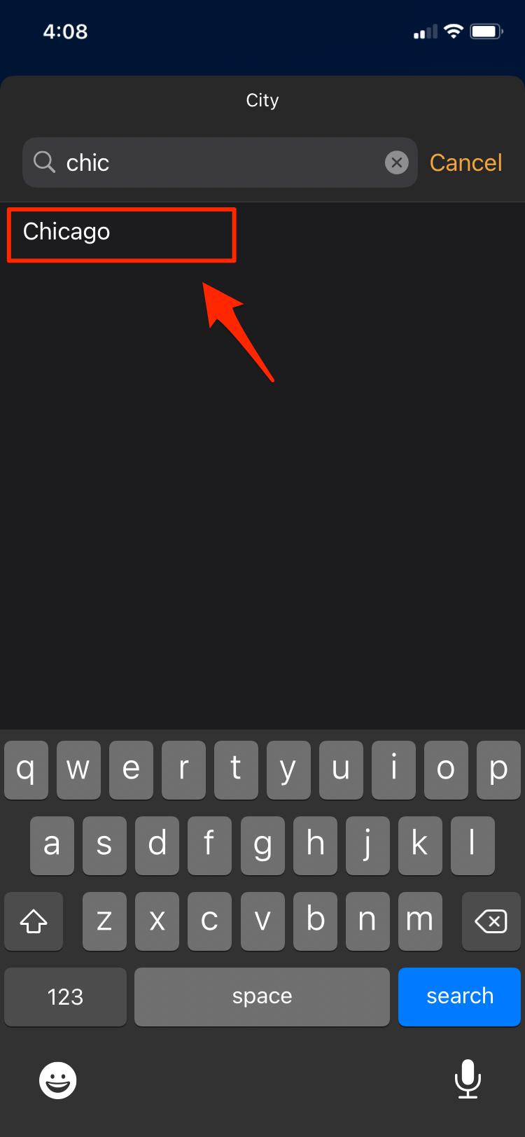 - Si le dice que no hay opciones disponibles, ingrese el nombre de una ciudad más grande en su zona horaria. Toca el nombre de tu ciudad.